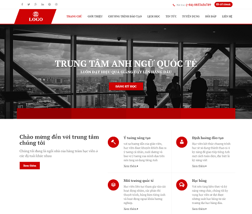 Website giới thiệu trung tâm ngoại ngữ, trung tâm giáo dục phong cách hiện đại, thích hợp cho nhu cầu của các bạn.